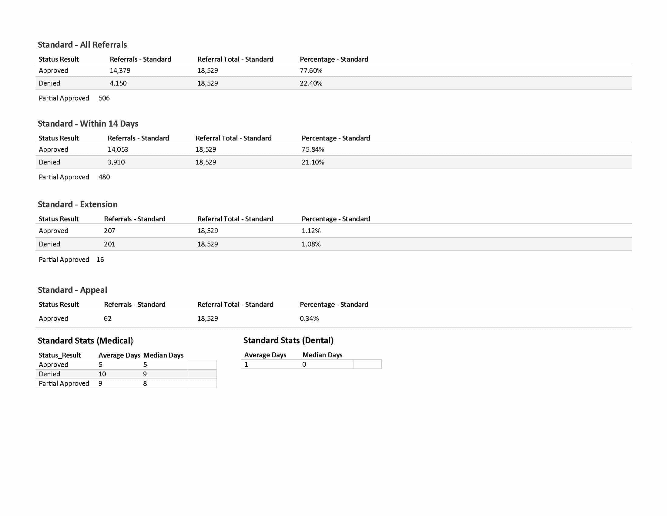 In 2025, Advanced Health received a total of 18,529 standard (non-urgent) prior authorizations for our covered patients. 77.60% of those requests were approved: